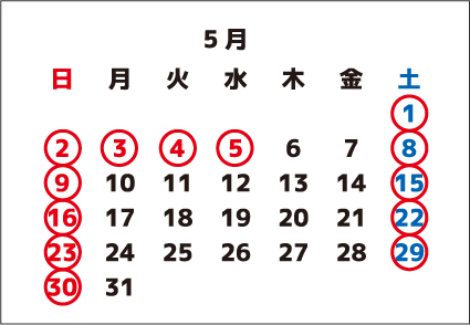 その月の土日祝日の合計が公休日となります。 必ずその日数分はお休みいただきます。