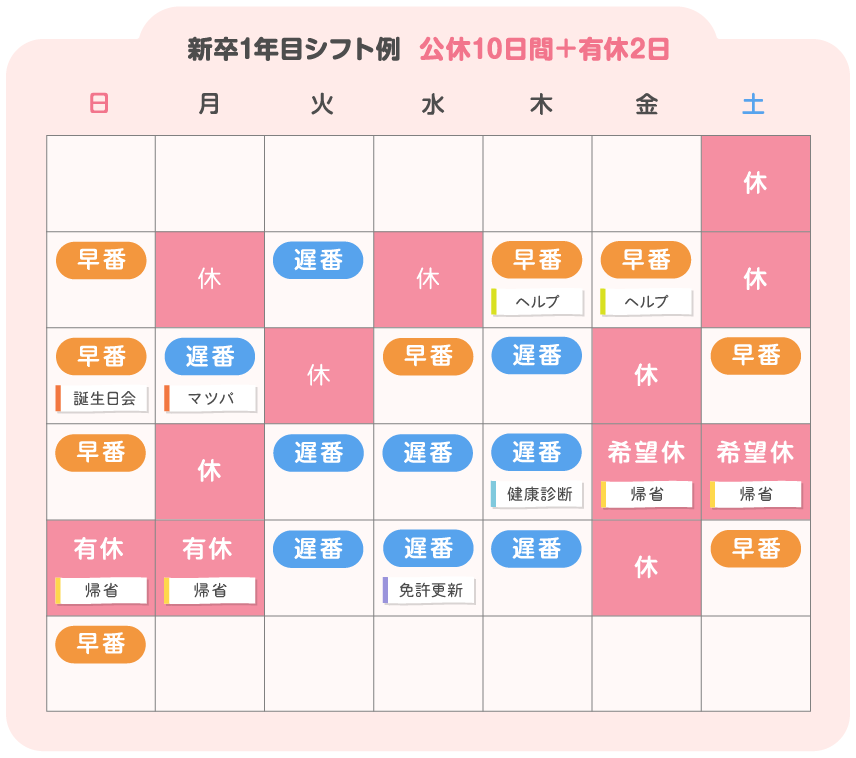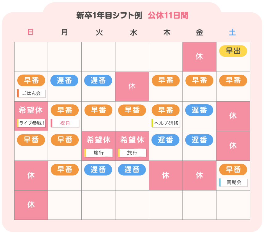 不安もあると思うので、実際の1ヶ月間のシフトを公開します!